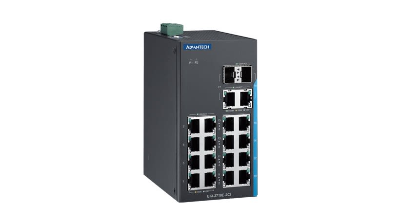 Advantech - Switch non manageable 16 ports RJ45 100 MBts + 2 Gbe combo - EKI-2718E-2CI-A