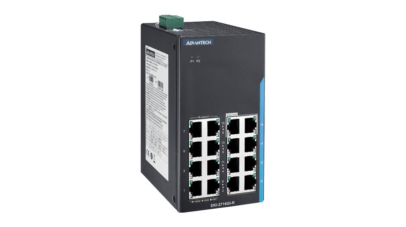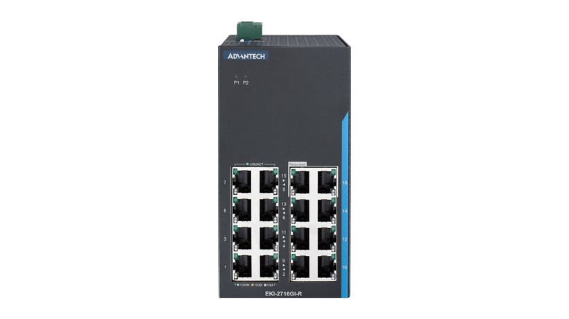 Advantech - Switch non manageable 16 ports RJ45 Gbe avec redondance RSTP/STP/X-Ring - EKI-2716GI-R-A