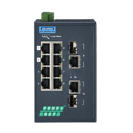 8 Fast Ethernet ports + 2 Gigabit Copper/SFP combo ports (EKI-5629C/I-PN)Entry-Level Managed SwitchIXM function enables fast deploymentProvides GSDML filesManagement: SNMP v1/v2c/v3, WEB, Standard MIB, Private MIBSupports Media Redundancy Protocol (MRP slaves)