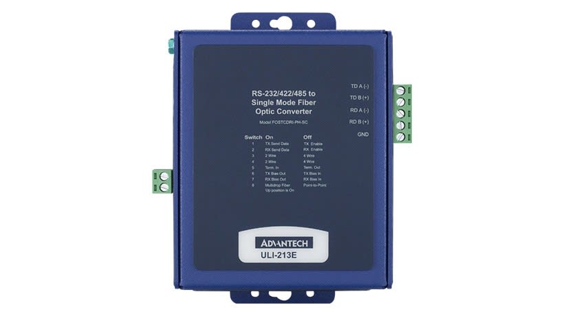 Advantech - ULI-213E - Heavy Industrial RS-232/422/485 (Terminal Block) to Single Mode - BB-FOSTCDRI-PH-SC