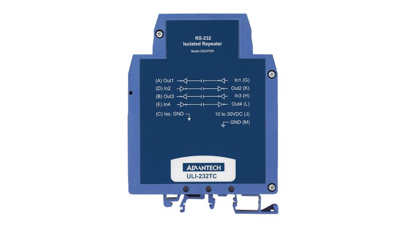 Extend and iso;ate RS-232 2 kV isolation Data rate: up to 115.2 Kbps -40 to +80 °C wide operating temperature DIN rail mount, IP30, TB 10-30 Vdc power supply required (not included, sold separately) UL Recognized