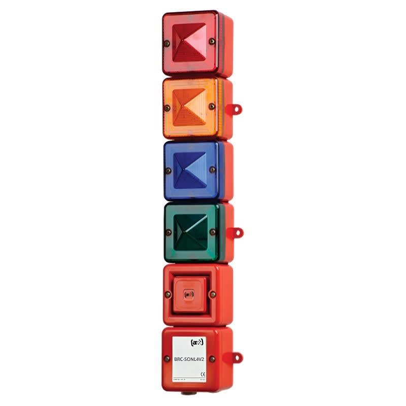 Les colonnes pré-cablées BRC-SONL sont composées d'une sirène 100 dB à 1 m, et jusqu'à 4 feux à combiner entre feux flashs et feux à LED. Feux non inclus.