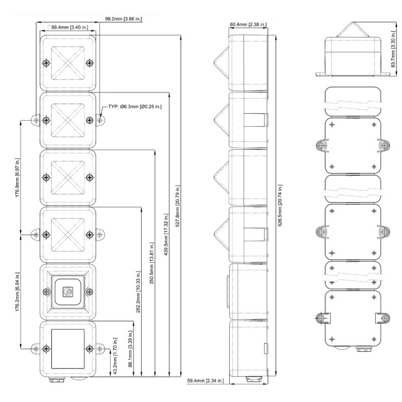 Les colonnes pré-cablées BRC-SONL sont composées d'une sirène 100 dB à 1 m, et jusqu'à 4 feux à combiner entre feux flashs et feux à LED. Feux non inclus.