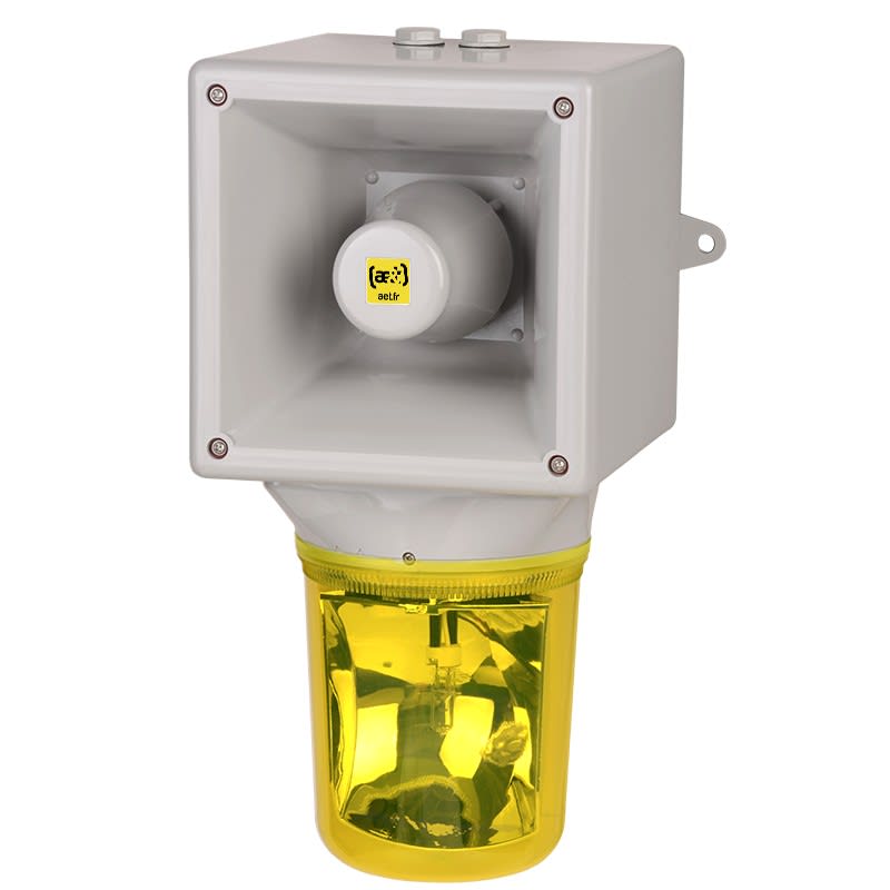 Ce combiné Optason® associe une sirène de 124 dB à 1 m à un feu tournant halogène 35W / 40W de type O400T. Le Feu et la sirène peuvent être controlés séparément.