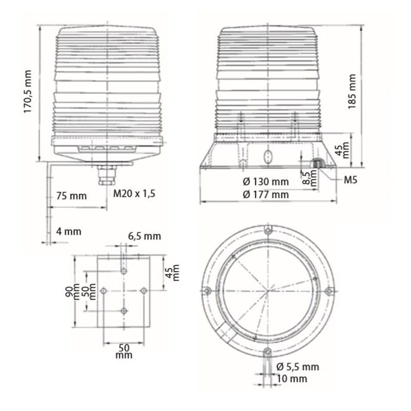 FLASH ALARM : Feu flash compact et puissant, de construction robuste, pour une signalisation de moyenne et longue distance avec une forte couverture visuelle. Ils sont recommandés pour la signalisation d’urgence ou de dangers. Nombreux design, couleurs d'optiques, cadences d'éclairs, performance visuelle et possibilités de montage (sur fond plat, sur pied, sur équerre selon les modèles).