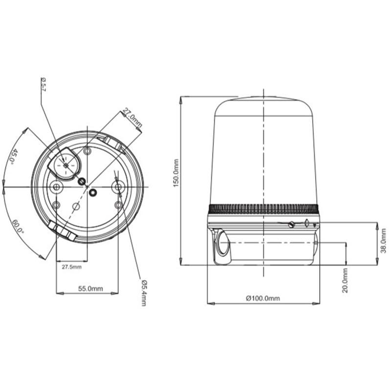 Aet - Feu flash cadence variable 5J 115Vca Vert 150xø100mm IP65 - O300FX1156