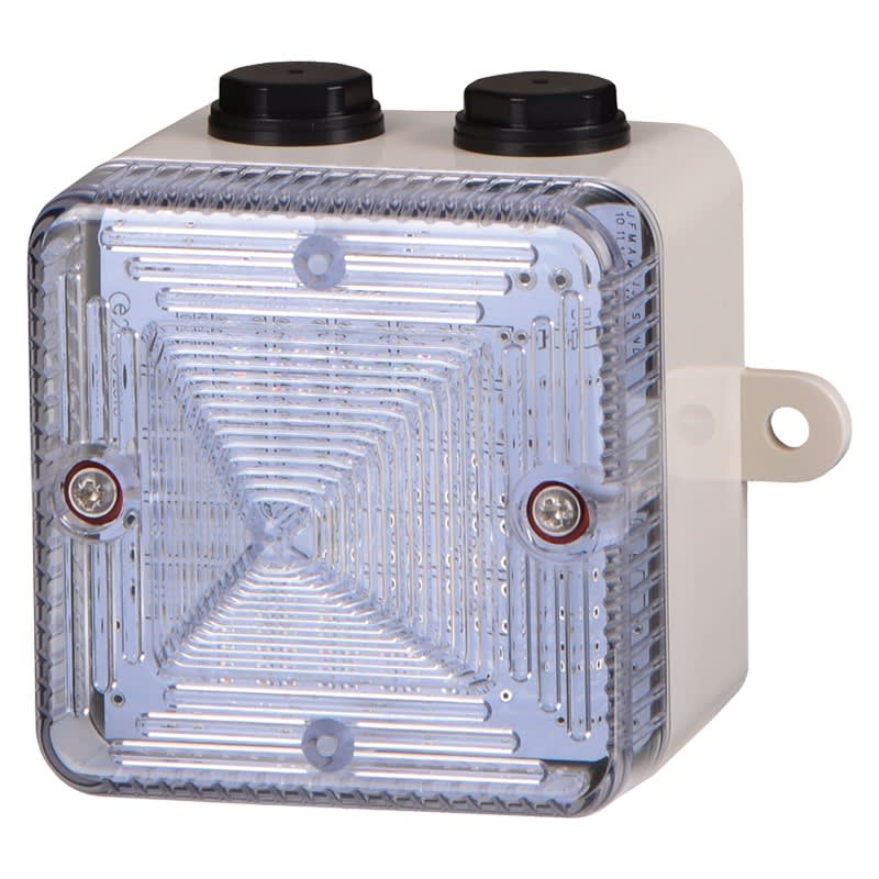 Feu flash xénon 200 cd (optique transparente). Certifié EN 54-23 pour une utilisation dans les systèmes d'alarme incendie.Puissance lumineuse jusqu'à 200 cdFlash 1 Hz (1,5 Hz et double flash disponibles avec les versions Vcc)Synchronisation automatique2 entrées de câbles Ø 20 mm (bouchons fournis)Doubles borniers débrochablesDiode anti-retour pour la surveillance de ligne