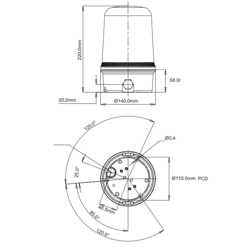 Aet - Feu LED multimodes 24Vcc Jaune 220xø140mm IP65 - O400L0245