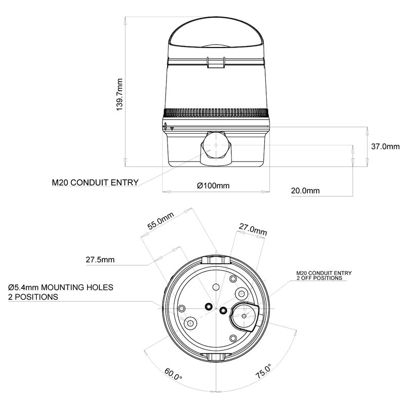 TRAFIC SIGNAL : Feu de trafic compact compact ou large, extrêmement visible par sa calotte effet Fresnel et ses leds haute luminosité, avec excellent indice de protection IP65. 8 modes de fonctionnement : fixe, clignotant, flash. Facilité d'installation avec 3 entrées de câbles, montage sur fond plat ou équerre de fixation. Peut s'associer avec une sirène, 3 sons disponibles
