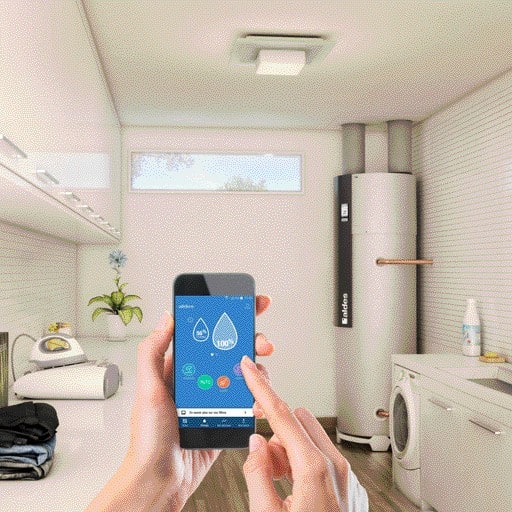 > Application :- Chauffe-eau thermodynamique qui combine production d'eau chaude et qualité d'air intérieur pour la maison individuelle en neuf ou en grosse rénovation,- Livré avec AldesConnect® Box pour le suivi et le pilotage de sa production d'eau chaude en temps réel avec AldesConnect®,- Idéal pour 1 à 2 personnes,- Domaine d'emploi ventilation Hygro selon Avis Technique BDH Solution Individuelle 14.5/25-2320,- Données RE2020 disponibles sur plage de débit de 27,8 à 137,5 m³/h.> Description :- La solution la plus performante de sa catégorie,- Jusqu'à 72% d'eau chaude produite gratuitement : COP (à 20°C selon EN16147) de 2,86 à 3,56,- Production d'eau chaude en continu : jusqu'à 320 litres (V40td) disponibles par jour,- 4 modes de fonctionnement : auto, boost, confort/invités, vacances,- Très silencieux : Lp à 2 m en champ libre à 160 m³/h < 28 dB(A),- Ultra fin : H 1311 x l 566 x P 573 mm (intégration dans un placard de 60 cm),- Garantie : PAC 2 ans et Ballon 5 ans.
