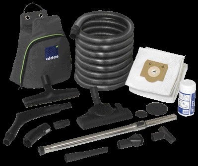 Set d'accessoires de nettoyage pour centrale C.Power (sac, flexible 7,50m, poignée de commande avec vanne d'arrêt, bras télescopique, 3 brosses, capteur plat, suceur fin, sac 30 litres + filtre, lingettes Net-Pipe)