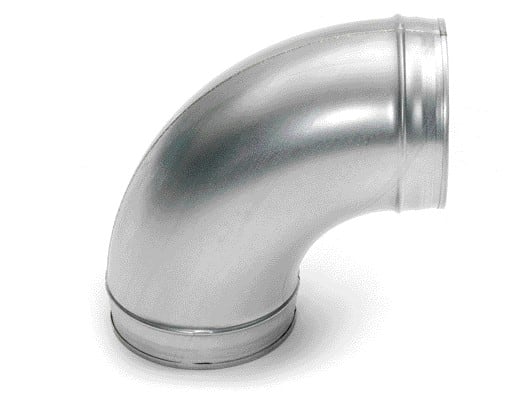 Application :> Changement de direction à 90° d'un réseau tertiaire et collectif Description : > Coude 90° embouti en acier galvanisé diamètre 80 mm