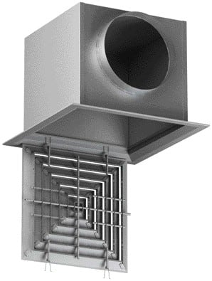Diffuseur carré fixe 4 directions pour dalle plafond 600x600 mm AF 704 TP - Soufflage/reprise - 375x375mm - Ossature TBar - Aluminium peint blanc RAL9003 30% - Montage sur le col par vis non apparentes