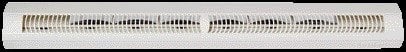 Application :> Fente double : 2 x (172 x 12) mm ou Fente simple (250 x 15) mm.> Installation sur la mensuiserie.Description :> Ailettes assure la fonction antimoustique.> Aucune vis de fixation apparente.> Isololement acoustique de 36 à 41 dB.