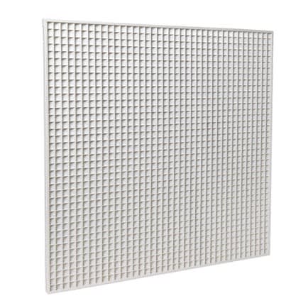Grille plafond à mailles carrées inclinées à 45° de 15x15mm (reprise) AU124Z - Aluminium avec peinture époxy blanche RAL9003 - Pour dalle de 600x600 mm avec support T - Cadre fin de 5 mm