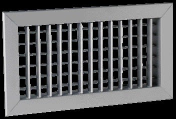 Grille murale double déflexion (soufflage) AC 102D - Aluminium anodisé, teinte naturelle satinée- Fixation F3 non apparente par clips à friction - 200x100 mm - Ailettes mobiles, réglables individuellement, espacées de 20 mm