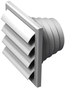 Application :> Grille plastique blanche carrée pour extraction d'air> Evite l'entrée d'air quand l'extracteur est à l'arrêtDescription :> Raccordement circulaire multi-diamètre 100 - 110 - 120 - 130 - 150 mm (profondeur 115 mm)> Couleur blanche> Montage mural en extérieur> Fixation par vis non apparentes> Dimensions extérieures : 186 x 186 mm