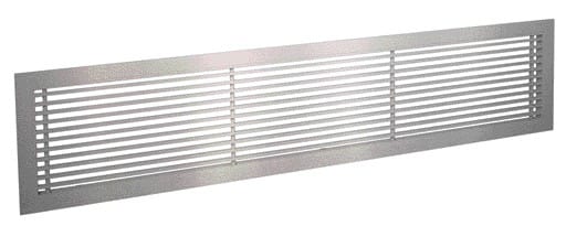 Grille murale de soufflage ou reprise GRIDLINED WALL F3 600X150 en aluminium anodisé - Profils d'aluminium extrudés - Barres frontales fixes horizontales à 15° de déflexion - Cadre de largeur 23 mm