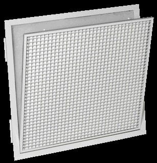 Grille plafond (reprise) ouvrante AC174Z - Aluminium avec peinture époxy blanche RAL9010 30% - Pour dalle de 600x600 mm avec support T - Mailles carrées 15x15mm inclinées à 45° - Avec filtre G3 15 mm classé M1 (ISO Grossier 60%)