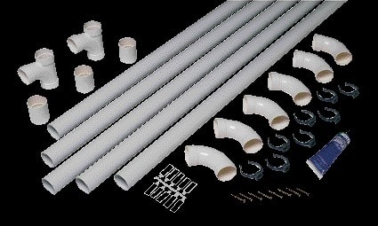 Application :> Réseau de conduits d'aspiration et accessoires dimensionnés pour 2 prises> Passage en comble, contre-cloison ou sous dalle> Neuf et grosse rénovationDescription :> Kit de conduits d'aspiration centralisée pour un total de 2 prises> Prises non incluses> Faible pertes de charges qui garantissent un transport efficace des poussières (vitesse des poussières > 110 km/h)> Matière PVC> Diamètre 51mm