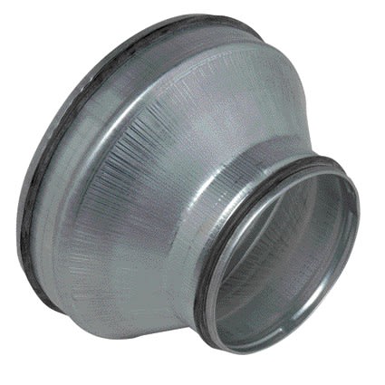 Application :> Raccordement étanche d'un conduit 450 mm à un conduit 315 mm en réseau circulaire tertiaire ou collectif Description : > Réduction concentrique à joint en acier galvanisé diamètre 450/315 mm