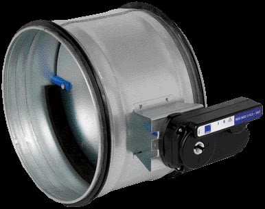 Registre motorisé MDA D160 du système de régulation de débit VMT - Avis technique N°14.5/16-2185 - Le débit max est régulé par un MR Modulo VMT - Chrono-proportionnel : Ouverture de Xmin par tranche de 10min selon le signal du capteur