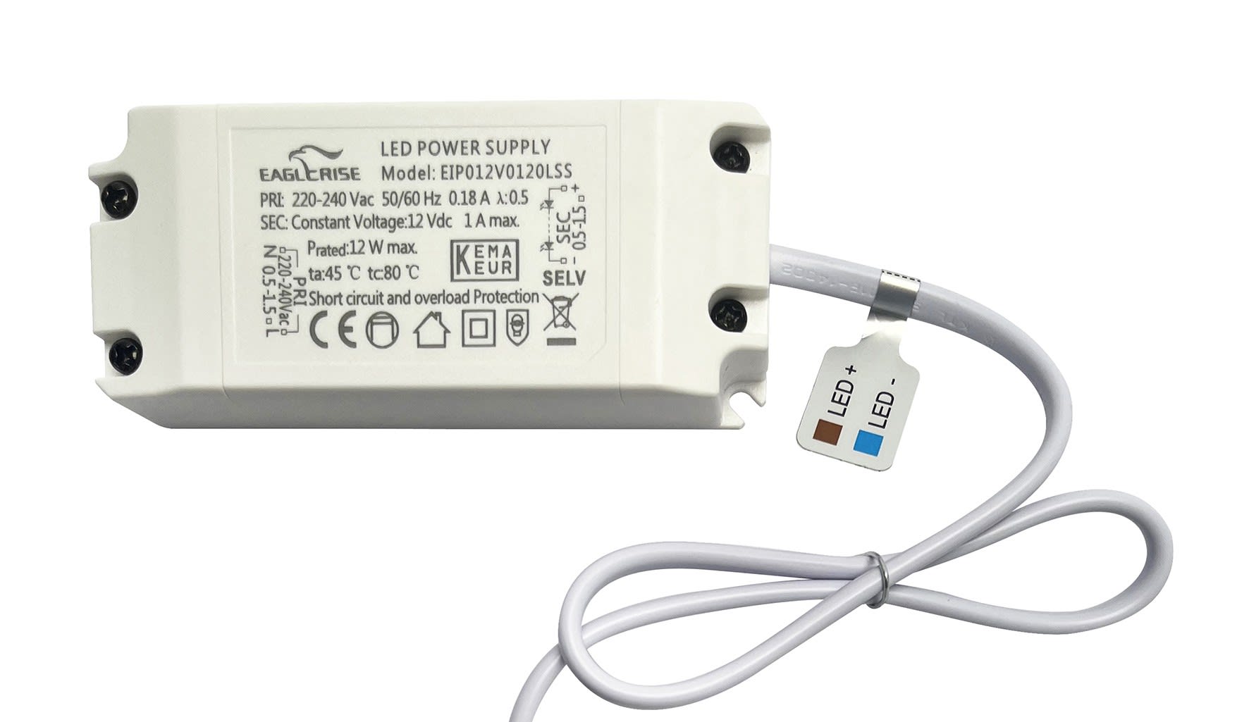 Alimentation LED 12V DC 12W 1A 30000H non dimmable, précâblée