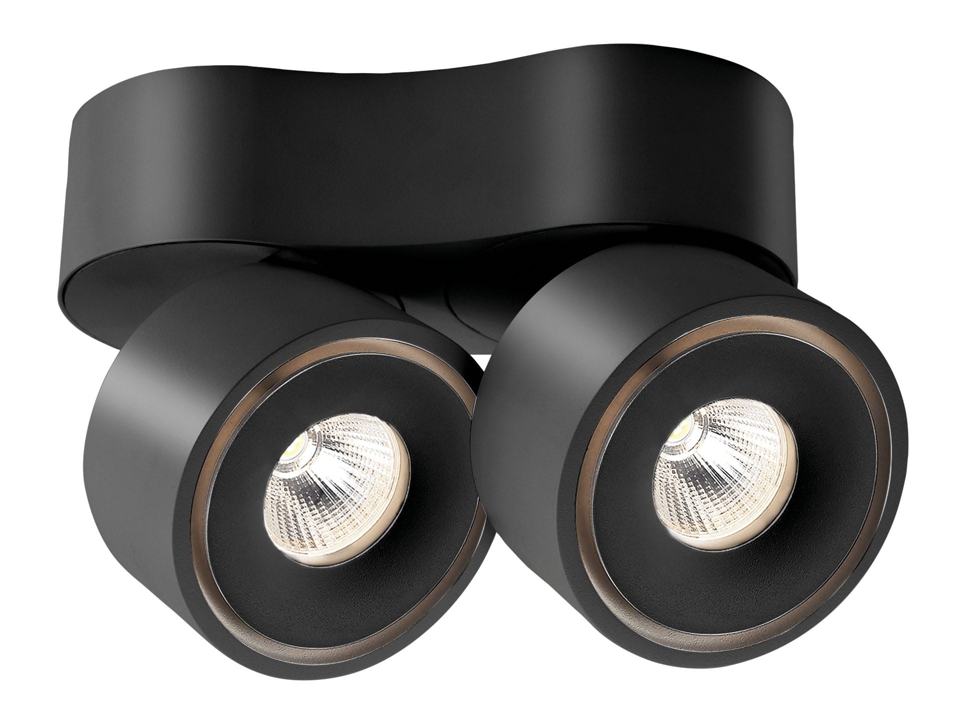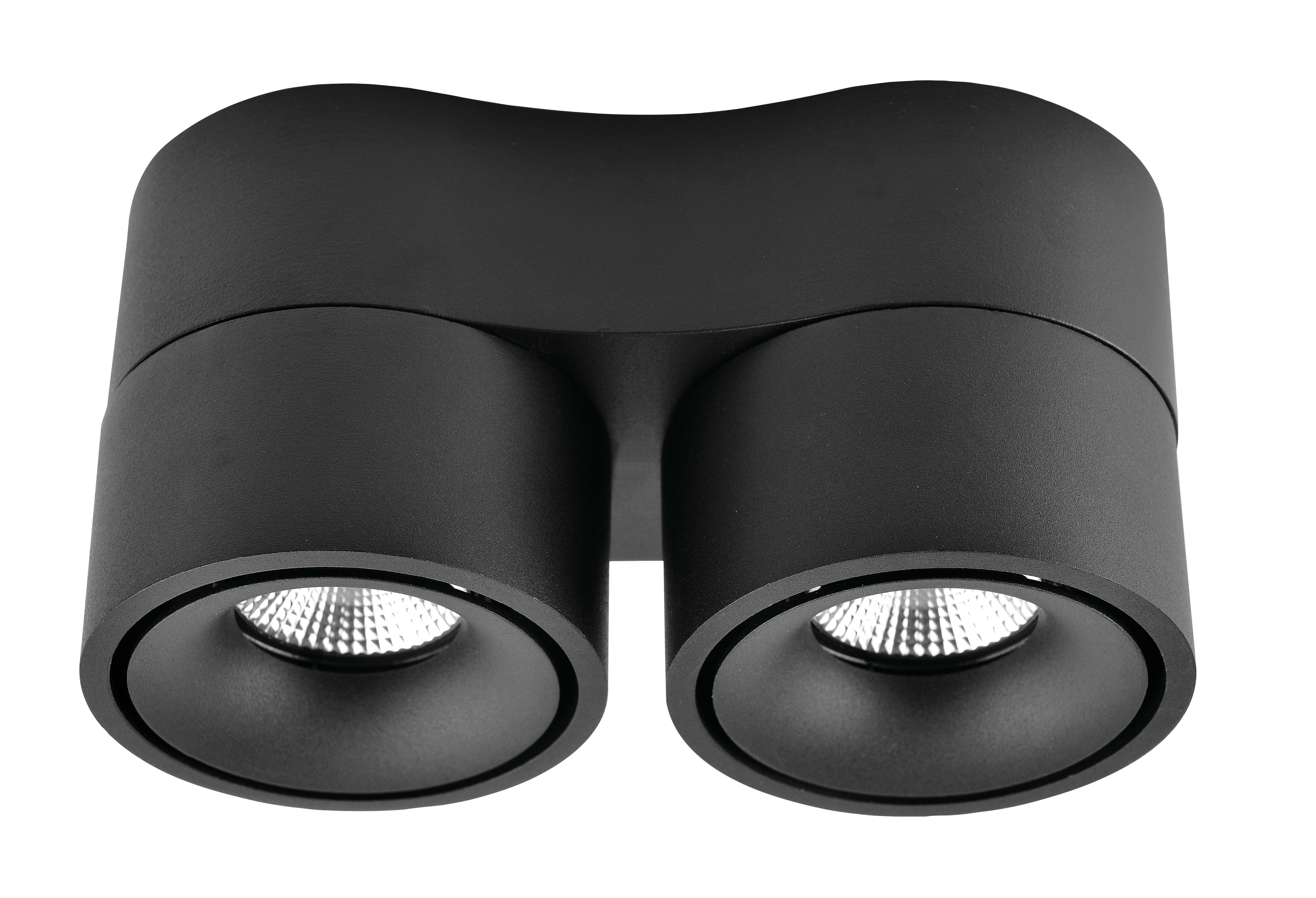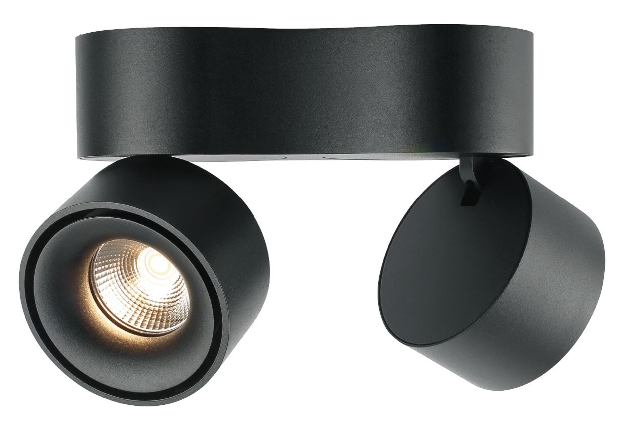 Applique murale ou plafonnier orientable MINI TAHITI noir, version double avec 2 têtes orientables indépendamment jusqu'à 90°, LED 16,2W 50000h angle de faisceau 36° RG1 1250 lumens CCT 2700-3300-4000K flicker free - Interrupteur à l’arrière du produit, Corps aluminium, Alimentation intégrée, Montage mur (applique) ou plafond, dimmable par coupure de phase