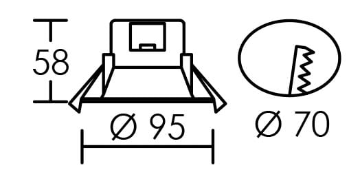 Encastré faible profondeur - Très bonne efficacité lumineuse de 90 à 100 lm/W - Application : sanitaires SDB volume 2 - Option collerette inox - Connexion sans outil