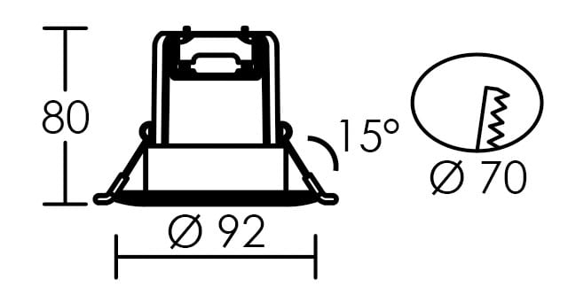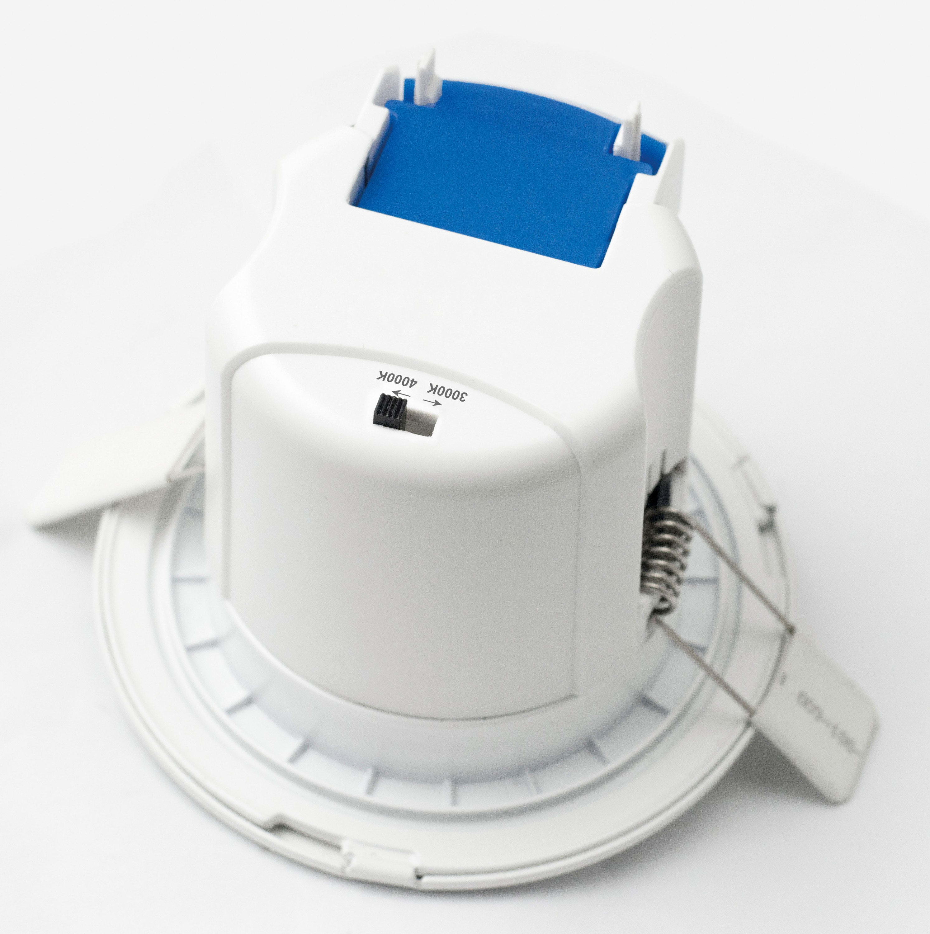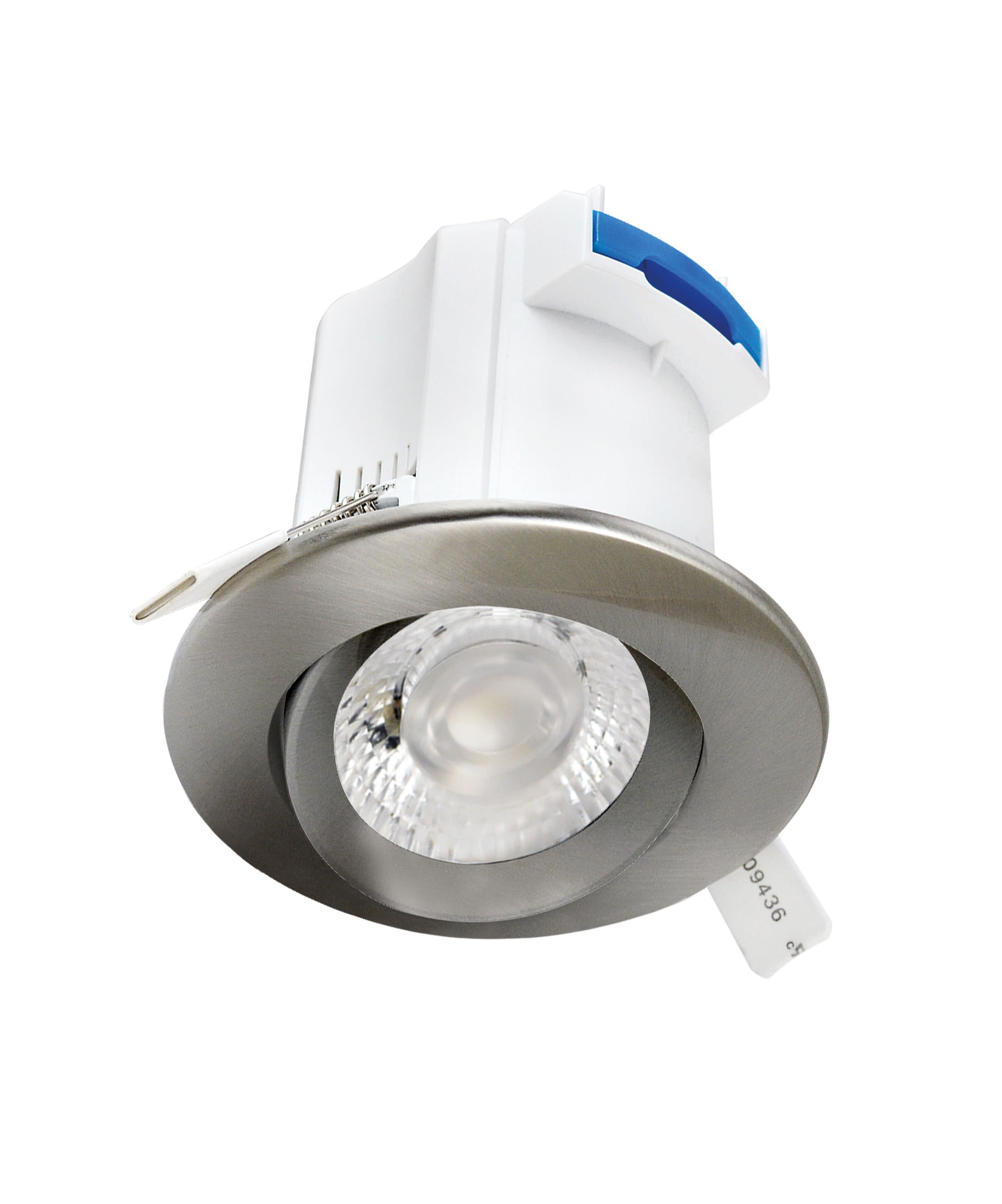 Encastré IP20/65 autorisé Volume 2, recouvrable tout isolant et adapté RE2020, basculant à 15°, nickel, LED 6W 550lm 3000/4000K (CCT), 35000h