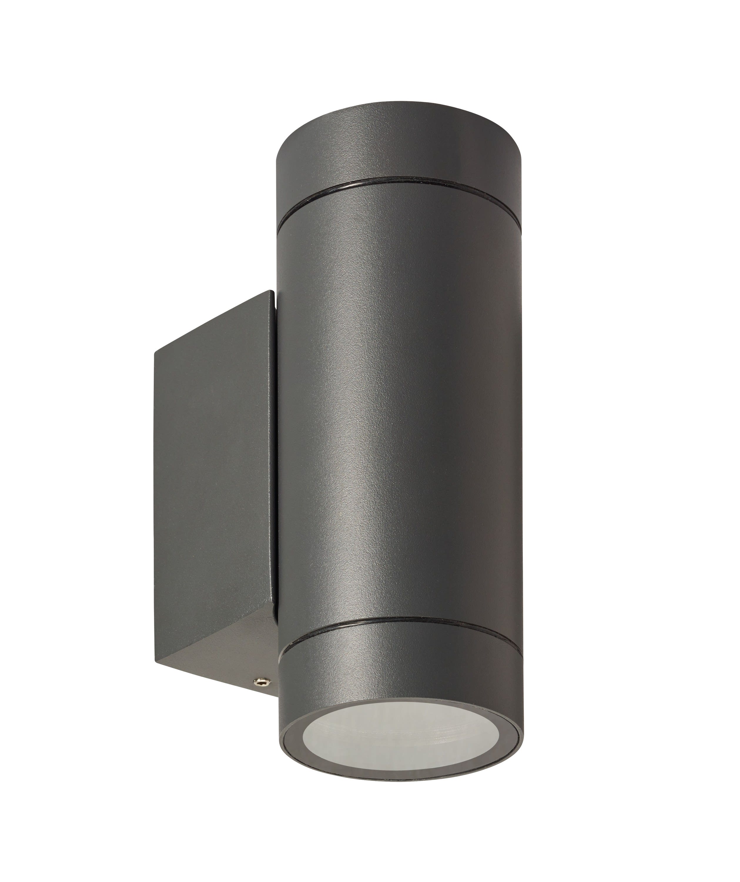 Applique murale Extérieure IP54 IK05, éclairage 36° vers le haut et le bas, aluminium graphite extrudé, lampes GU10 LED CCT 5W 3000-4000K 500lm dimmables 15000h fournies (flux sortant 375lm)