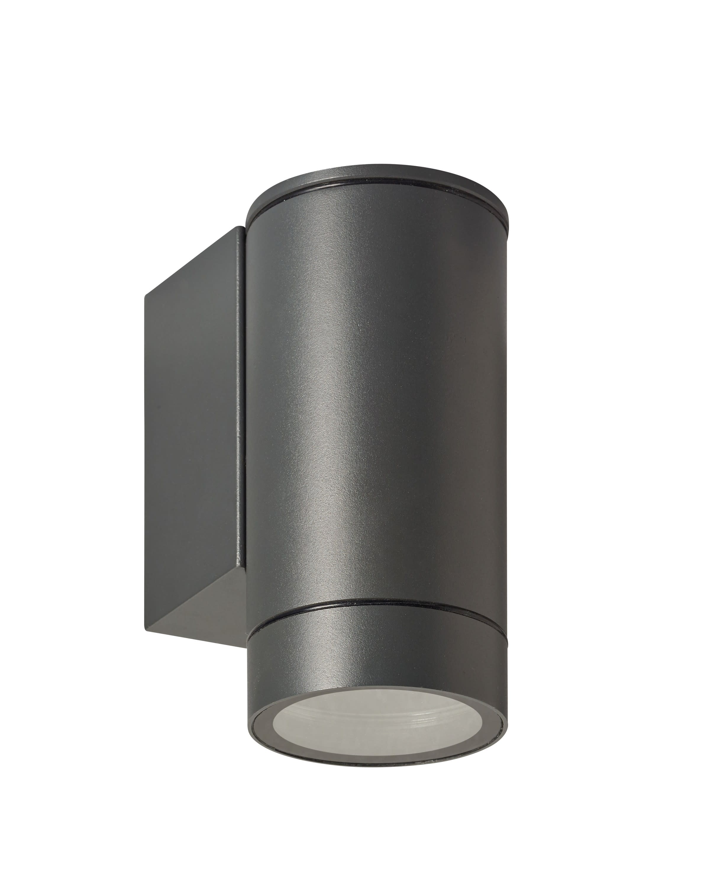 Applique murale Extérieure IP54 IK05, éclairage 36° vers le bas, corps aluminium graphite extrudé, cylindrique, lampe GU10 LED CCT 5W 3000-4000K 500lm dimmable 15000h fournies (flux sortant 375lm)