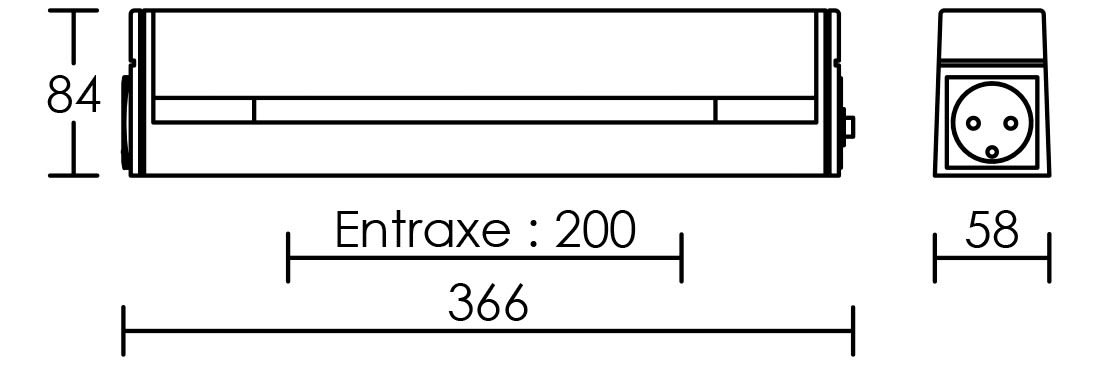 Réglette S19 IP21, autorisée Hors Volume, avec interrupteur + prise, avec lampe LED 6W 2700K 700 lumens fournie, diffuseur clair