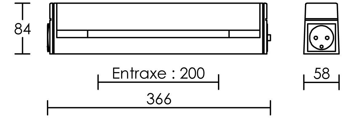 Réglette S19 IP21, autorisée Hors Volume, avec interrupteur + prise, lampe non fournie (emballage VP)