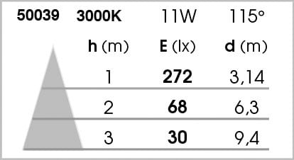 Son diffuseur opale lui confère un très bon angle symétrique de 110°, offrant un cône de lumière large, utile dans de nombreuses applications/ usages en résidentiel, tertiaire ou commercial :