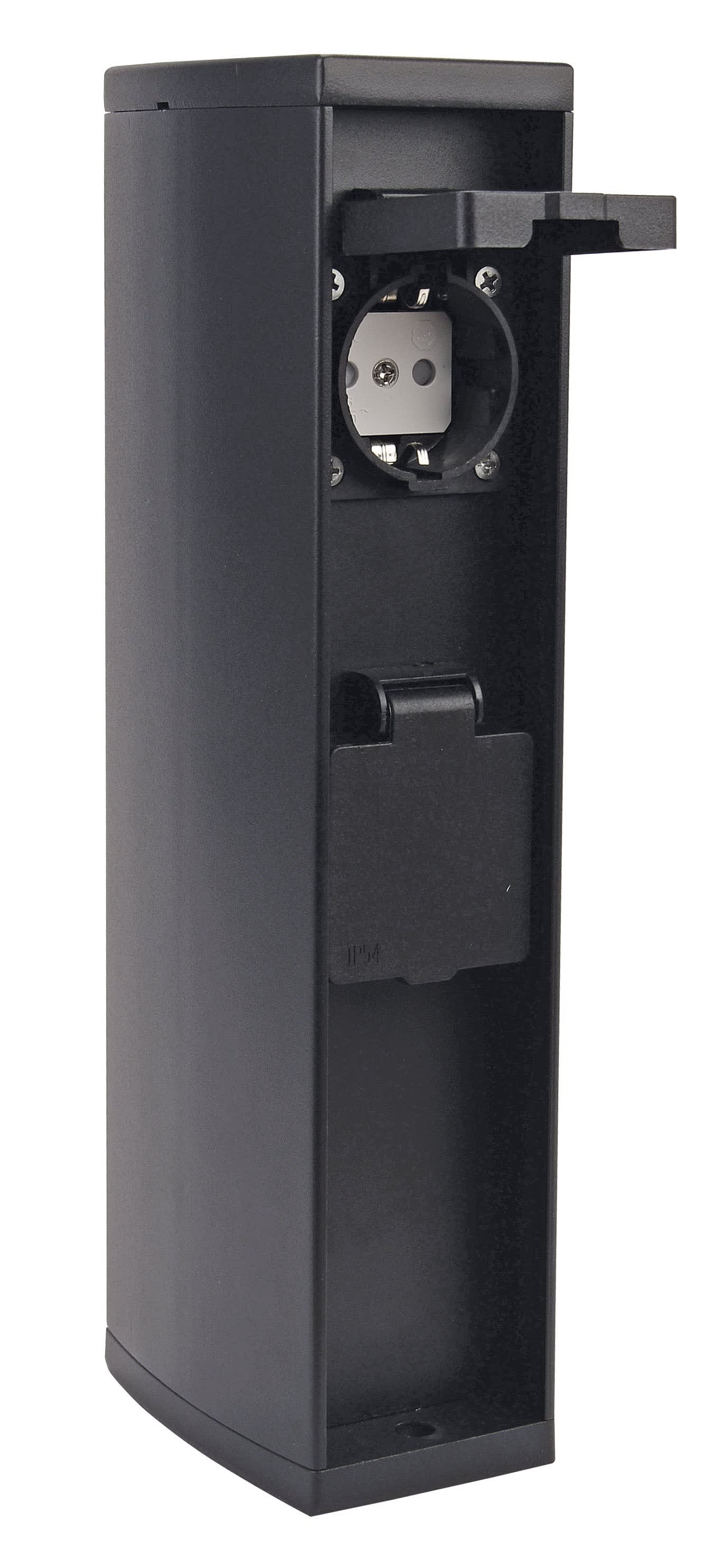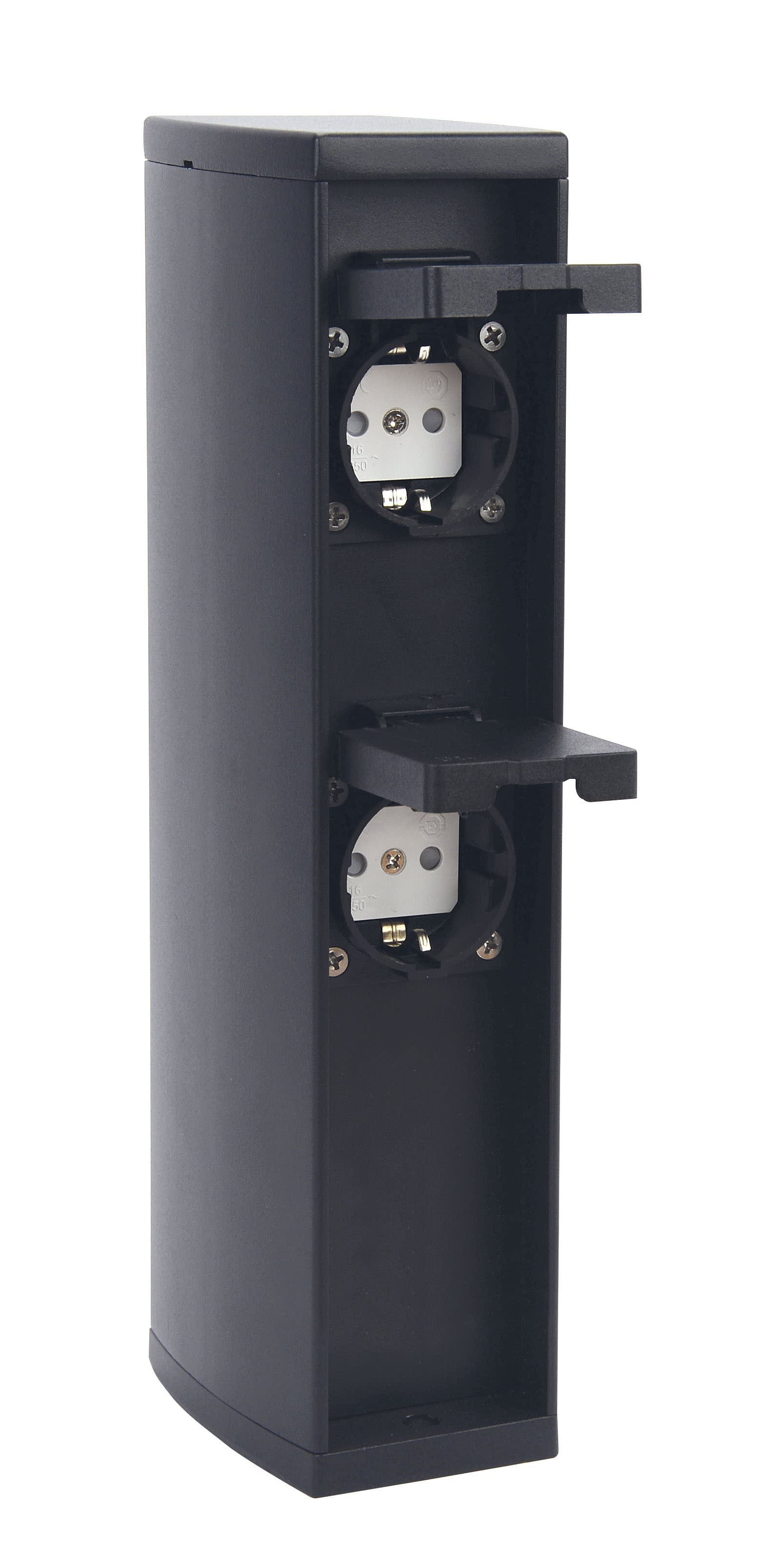 Borne prises 16A pour jardin IP44 IK07 en aluminium anthracite, précâblée avec connecteur IP68