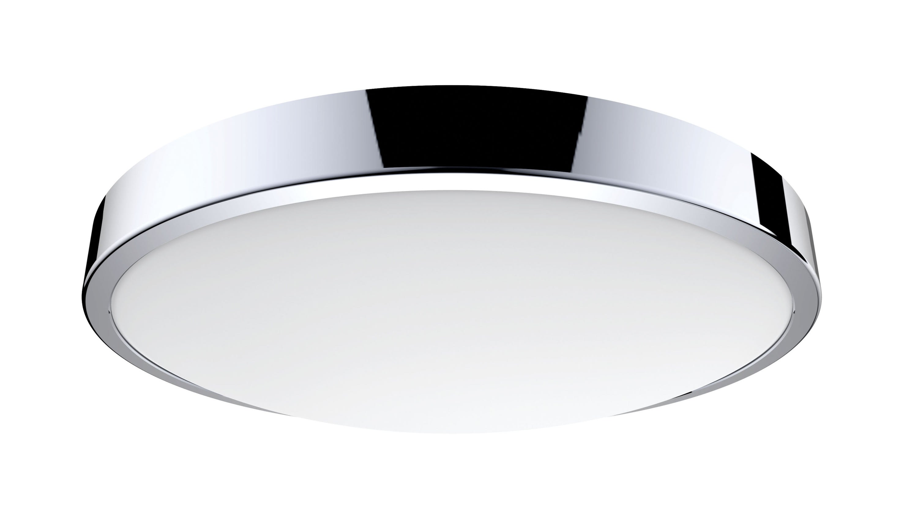 Plafonnier / Applique murale C4 IP44 LED intégrée 21W avec interrupteur CCT 3000K - 4000K 1900 lumens 25000h. Corps acier, vasque PMMA opale, anneau décoratif amovible chromé
