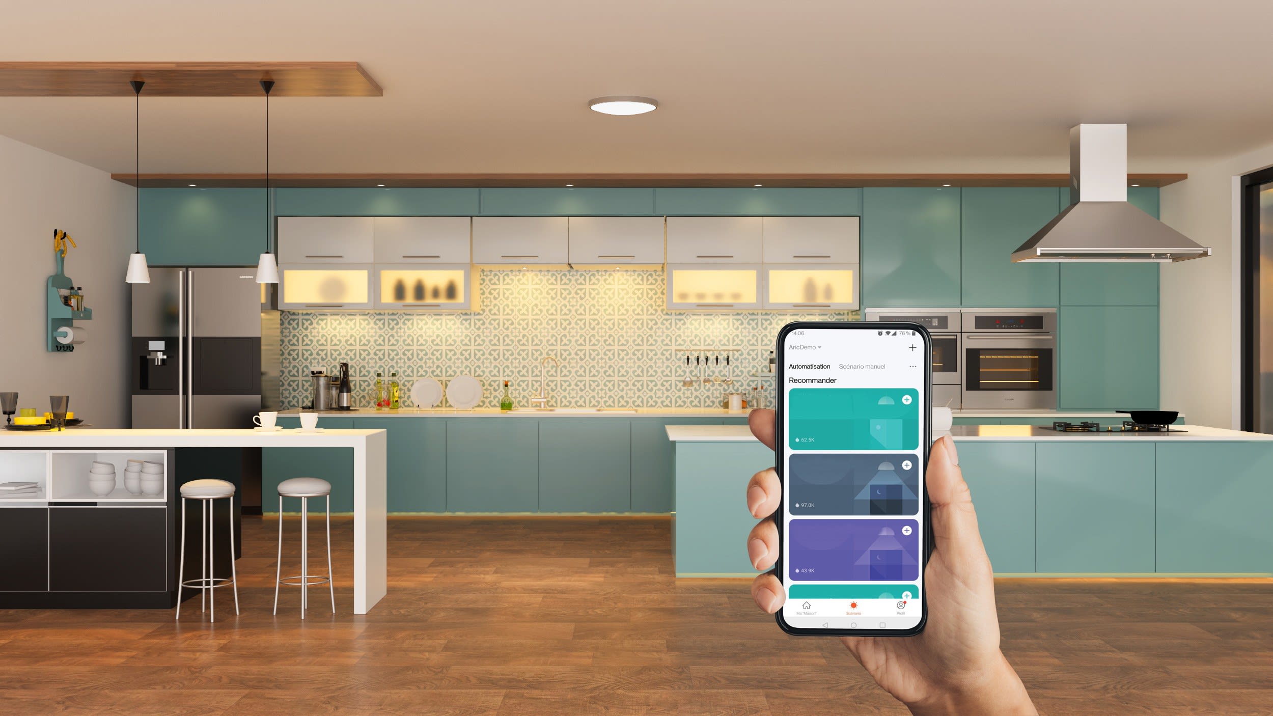 Détection par hyper fréquence 5,8 GHz - Réglage de la sensibilité et de la temporisation - Réglage en mode normal (par défaut) ou en mode crépusculaire - Démontage du diffuseur par ¼ de tour - Anneau décoratif amovible