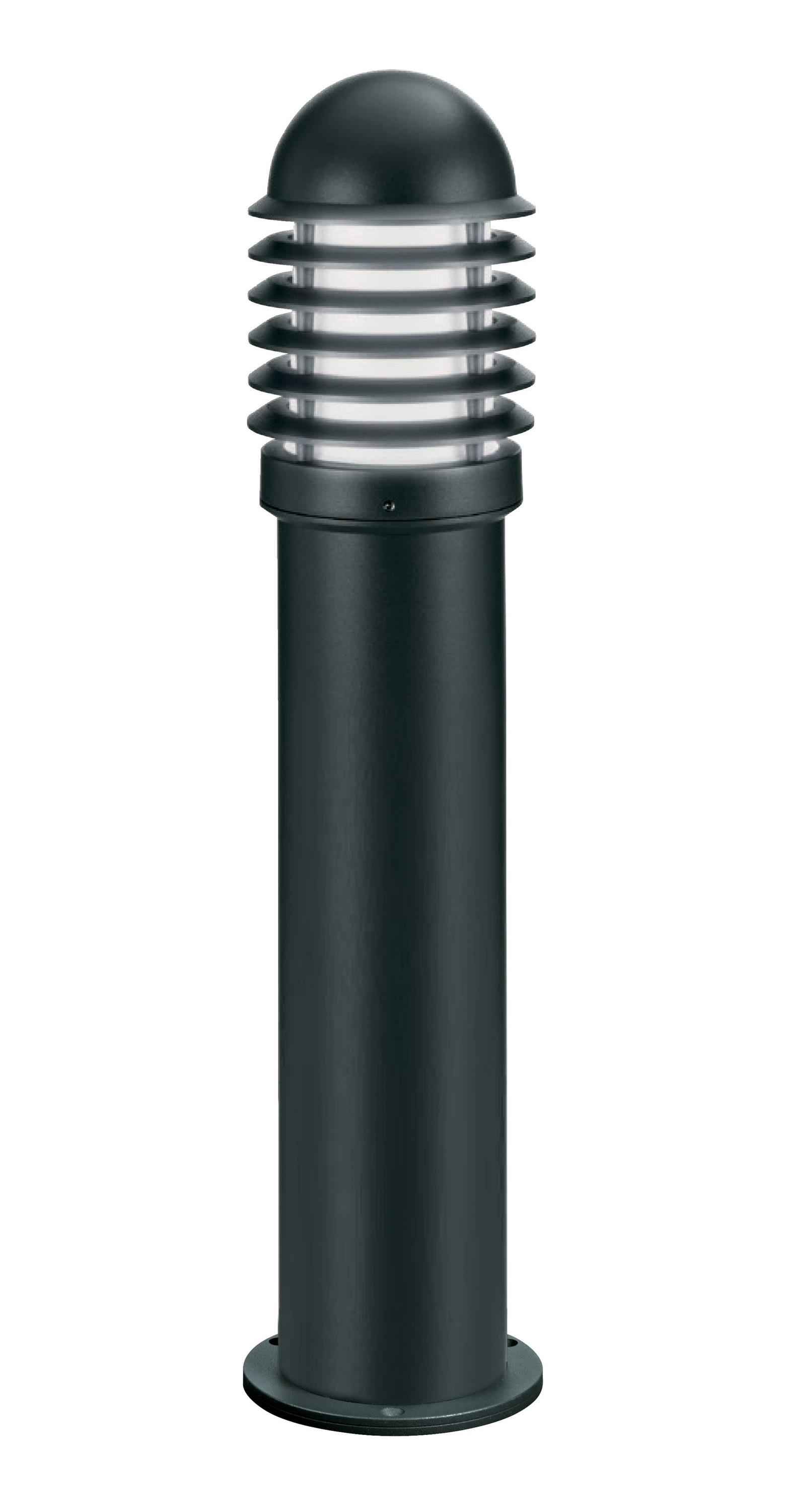 Borne Extérieure IP44 IK07, hauteur 73cm, en aluminium noir RAL 9005, finition mate, douille E27 100W max. Lampe non fournie.