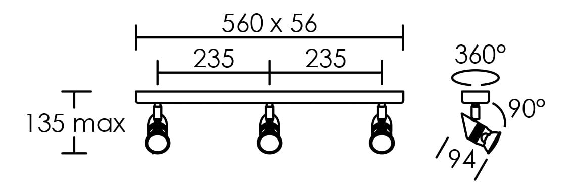 Aric - COMETE B3 - Plaf./Appl.Mur 3 spots GU10, blanc, a/lpes LED 4,2W 3000K 500lm incl - 0442