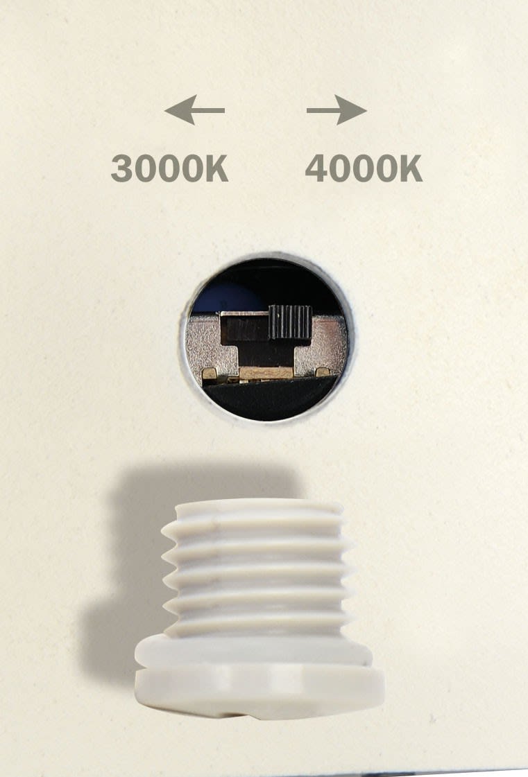 Disponible en blanc ou en noir, cette nouvelle version offre la possibilité de choisir entre blanc chaud (3000K) et blanc naturel (4000K) après la pose, grâce à un interrupteur CCT sur la tête d'éclairage.