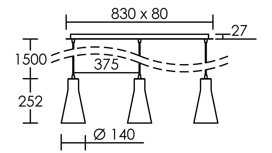 Suspension triple E27, Ø140mm, verre opale, lampe non fournie