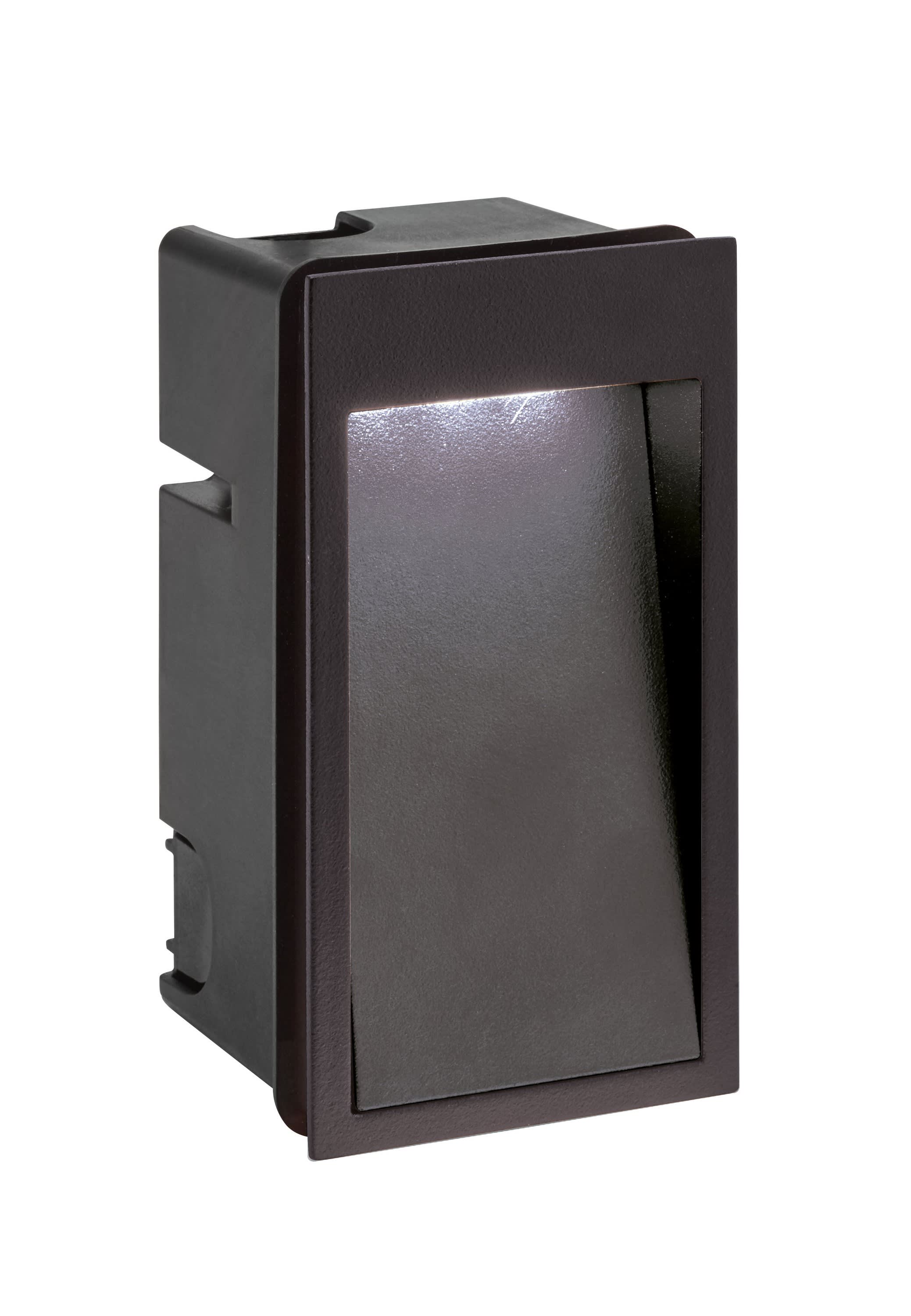 Encastré de mur extérieur rectangulaire, cadre et intérieur noirs, LED 4,5W 3000K, 200lumens, faisceau asymétrique. Alimentation 500mA 50000h (L80/B10) intégrée. Fourni avec boite d'encastrement et précâblé avec connecteur IP67.