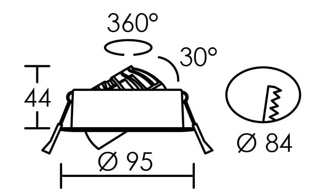 Recouvrable - Isolant Rouleau - Dimmable - Collerette deux finitions - Adapté au plénum de faible épaisseur - Corps alu et réflecteur intégré - Repiquable sur bornier sans outil jusqu’à maxi 10 luminaires - Application : sanitaires SDB volume 2