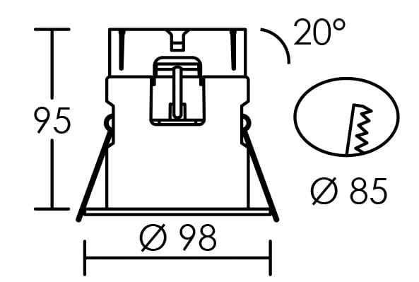 Recouvrable - Isolant Rouleau - Dimmable - Collerette deux finitions - Corps acier et réflecteur intégré - Repiquable sur bornier sans outil jusqu’à maxi 10 luminaires
