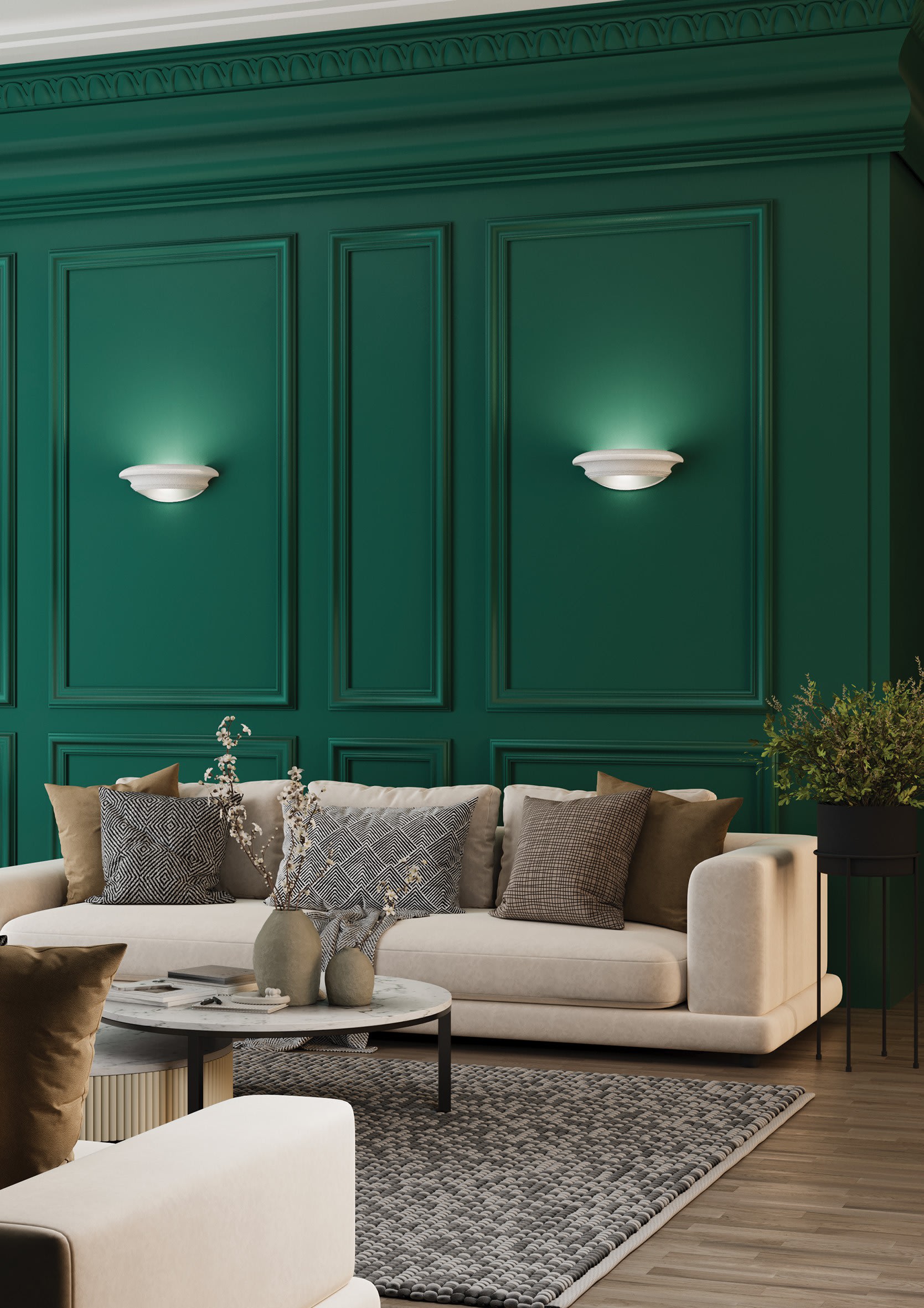 Applique murale plâtre E27 77W max., demi-lune, lampe non fournie