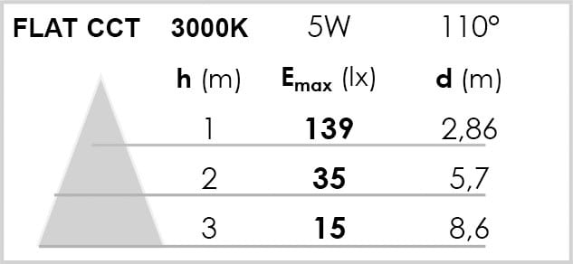 Faible épaisseur (22mm) d’encastrement pour une installation facile et polyvalente - Convient pour tous types de plafond - Corps en aluminium pour une meilleure dissipation thermique - Durée de vie de 35'000 heures - Angle symétrique de 110° - Alimentation séparée précâblée avec montage sans outils - Technologie avec interrupteur CCT, pour choisir facilement la température de couleur (3000K ou 4000K) au moment de l’installation