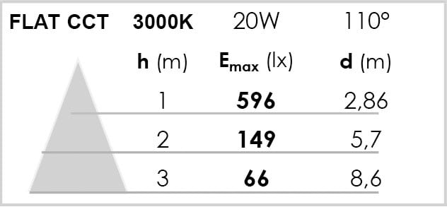 Faible épaisseur (22mm) d'encastrement pour une installation facile et polyvalente - Convient pour tous types de plafond - Corps en aluminium pour une meilleure dissipation thermique - Durée de vie de 35'000 heures - Angle symétrique de 110° - Alimentation séparée précâblée avec montage sans outils - Technologie avec interrupteur CCT, pour choisir facilement la température de couleur (2700 - 3000 ou 4000K) au moment de l'installation