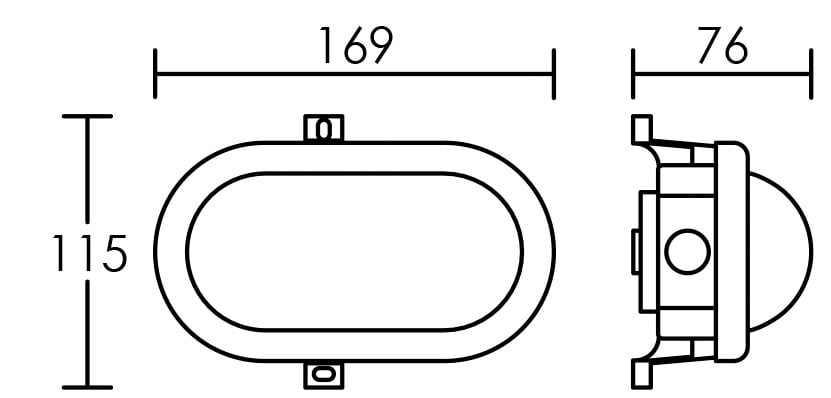 Hublot Extérieur IP54 IK03, ovale 169x115x76mm, corps polypropylène et diffuseur polycarbonate, LED intégrée 5,5W 4000K 500 lumens, 25000H
