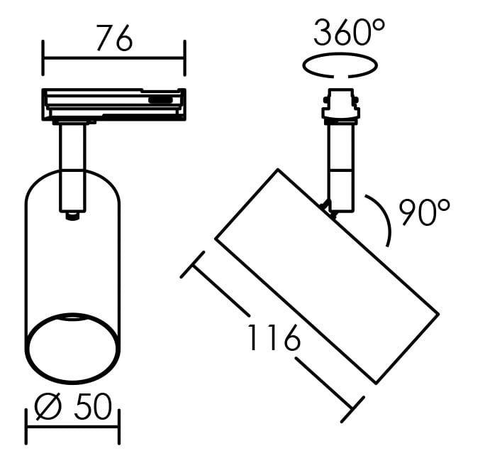 Projecteur pour Rail 1 allumage 029 (adaptateur fourni et monté), corps aluminium noir, réflecteur à facettes, faisceau 30°, LED intégrée 10,5W 3000K 850 lumens, durée de vie 40000h.